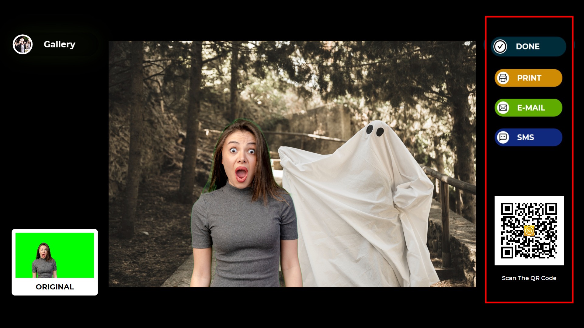 Once the photo is taken, your image will appear with the background and frame you