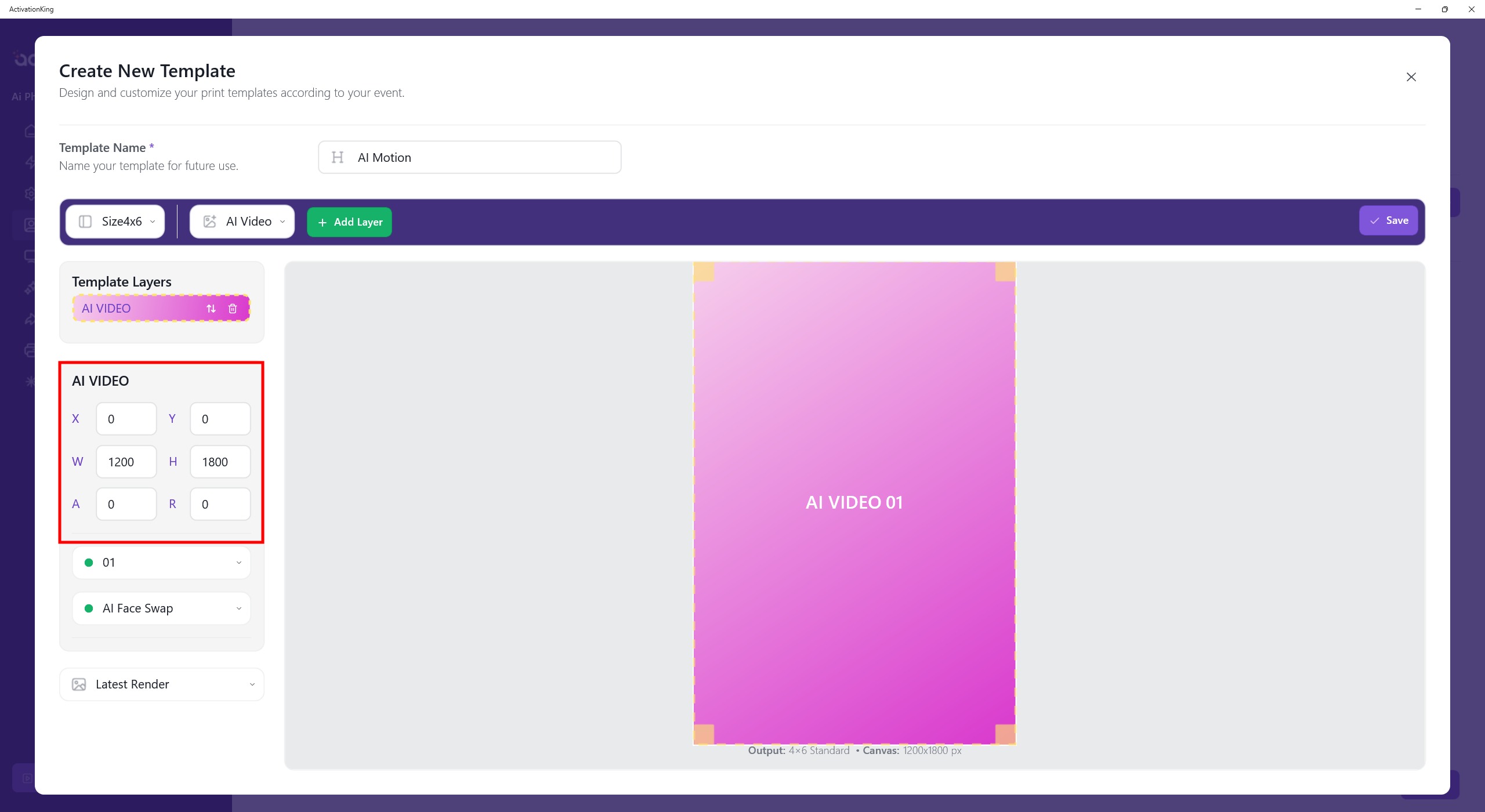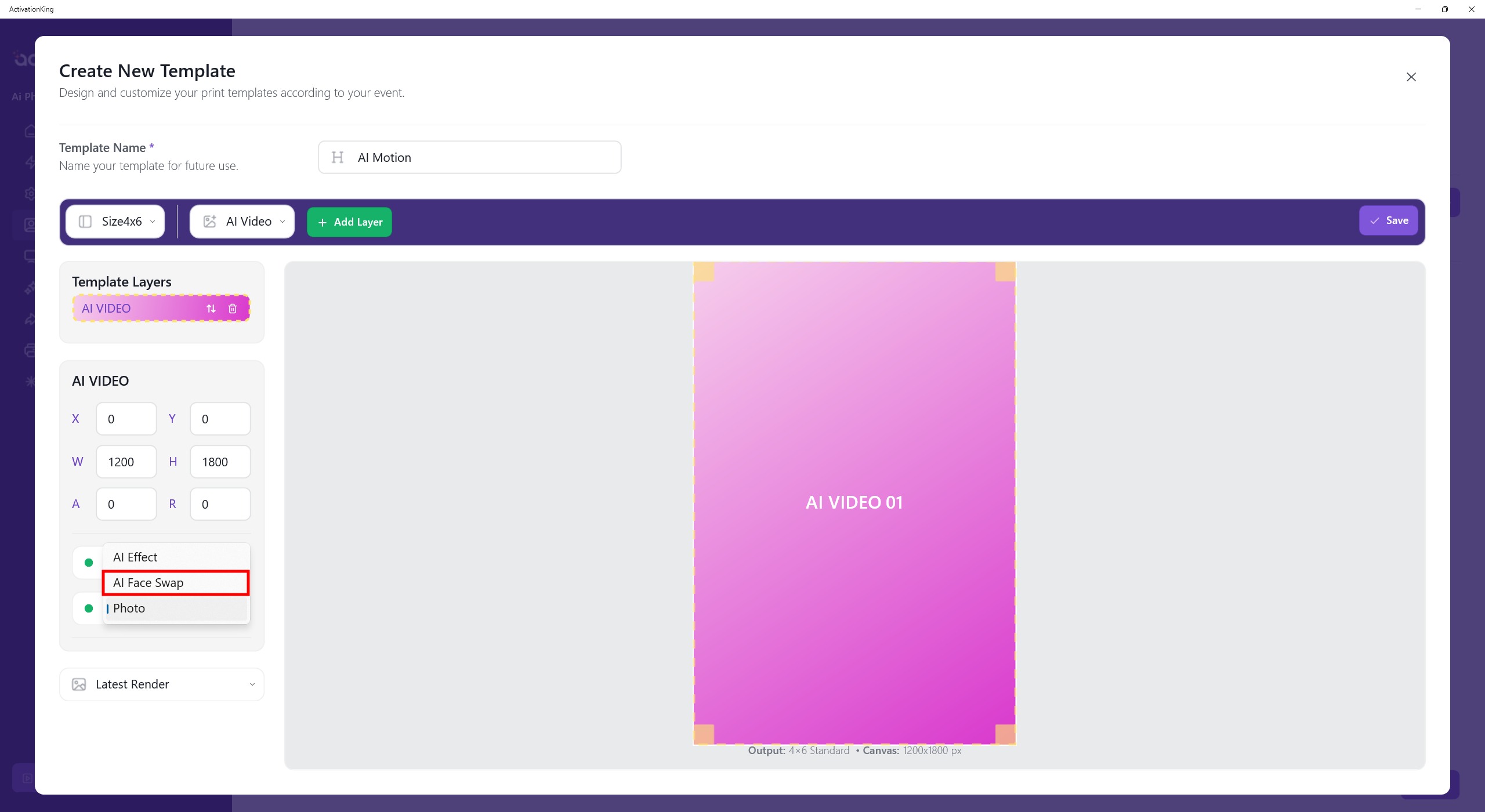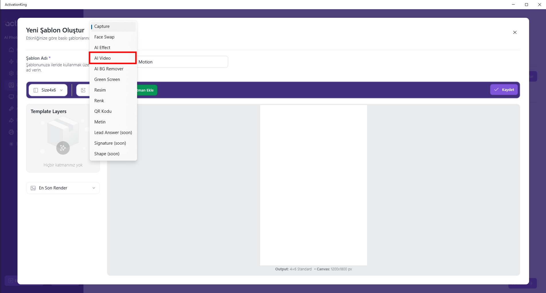When I click the button next to it, multiple mode options will appear. I select AI Video and then click the Add Layer button.