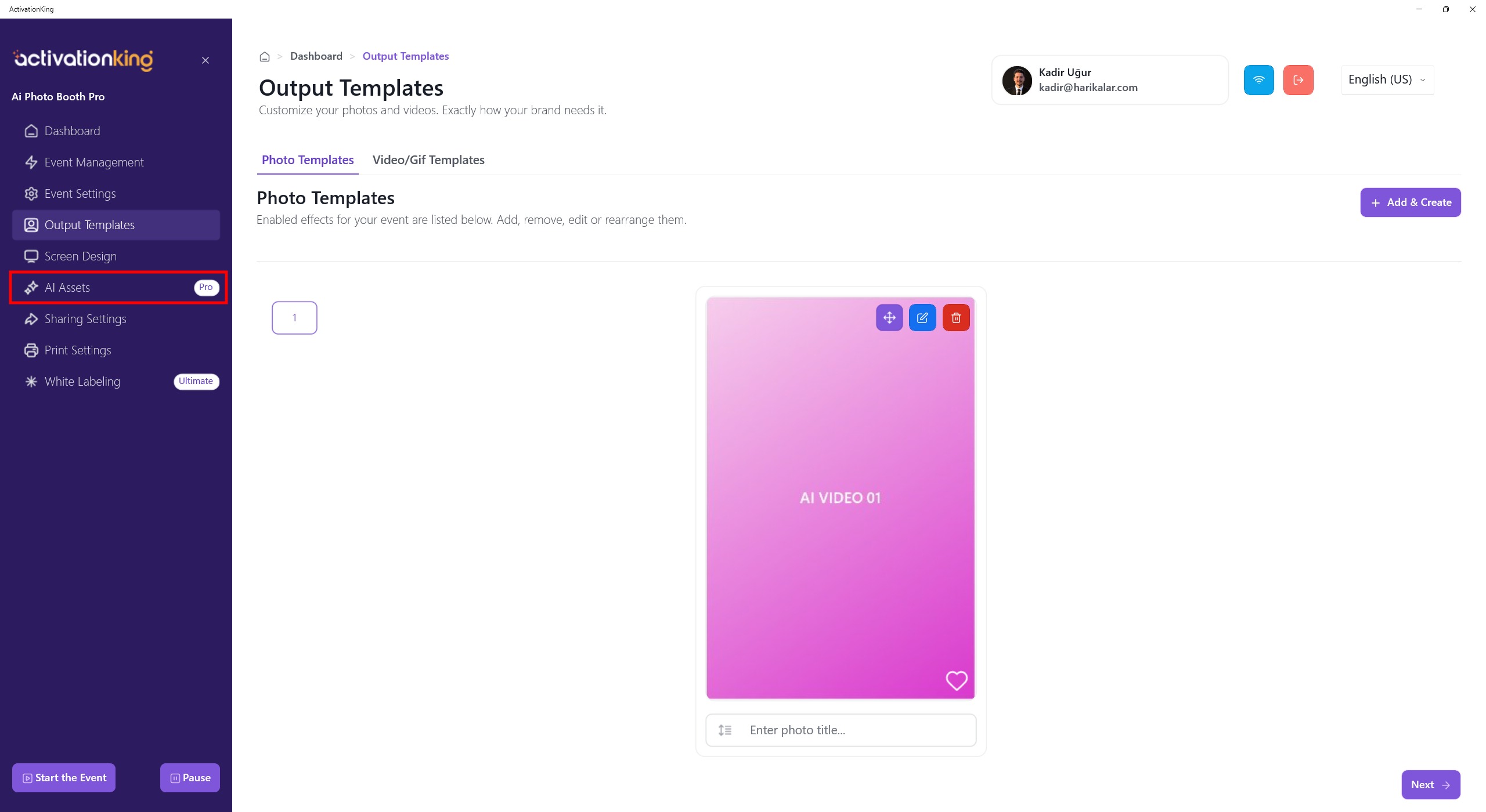 Now, to create a template for AI Motion, I click the +Add & Create button.
