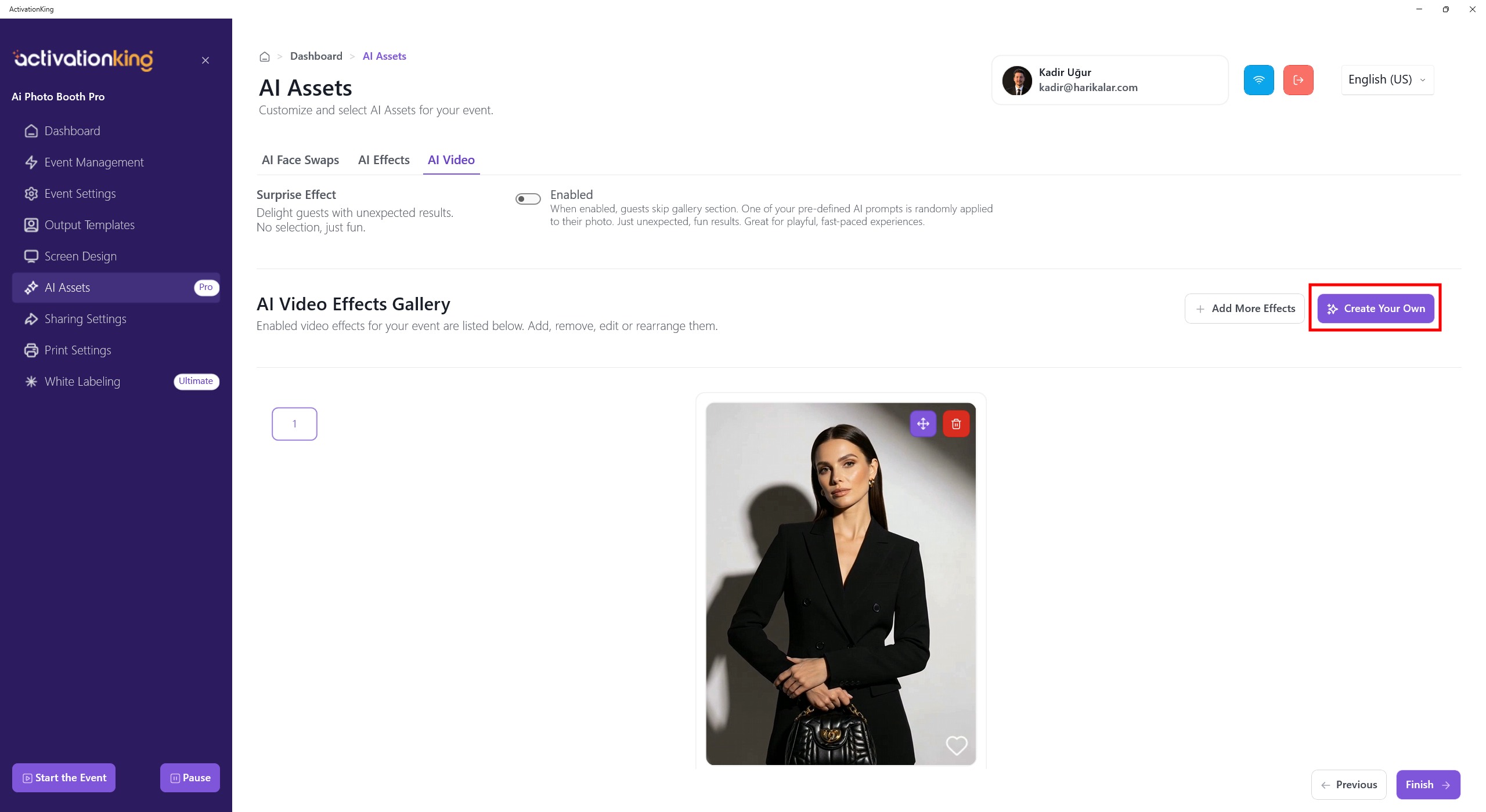 To create your own effect, click the Create Your Own button.