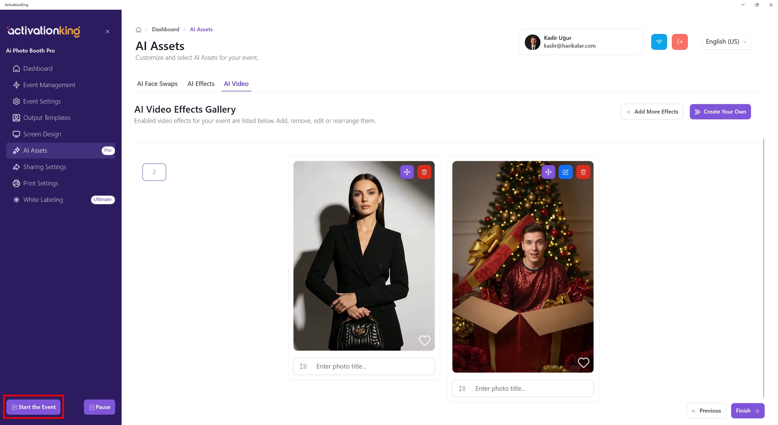 After finishing, click the Save and Close button, then click the Start the Event button located in the bottom-left corner.