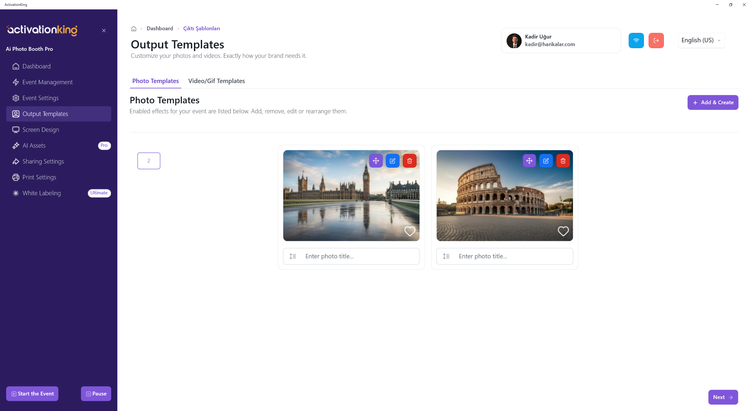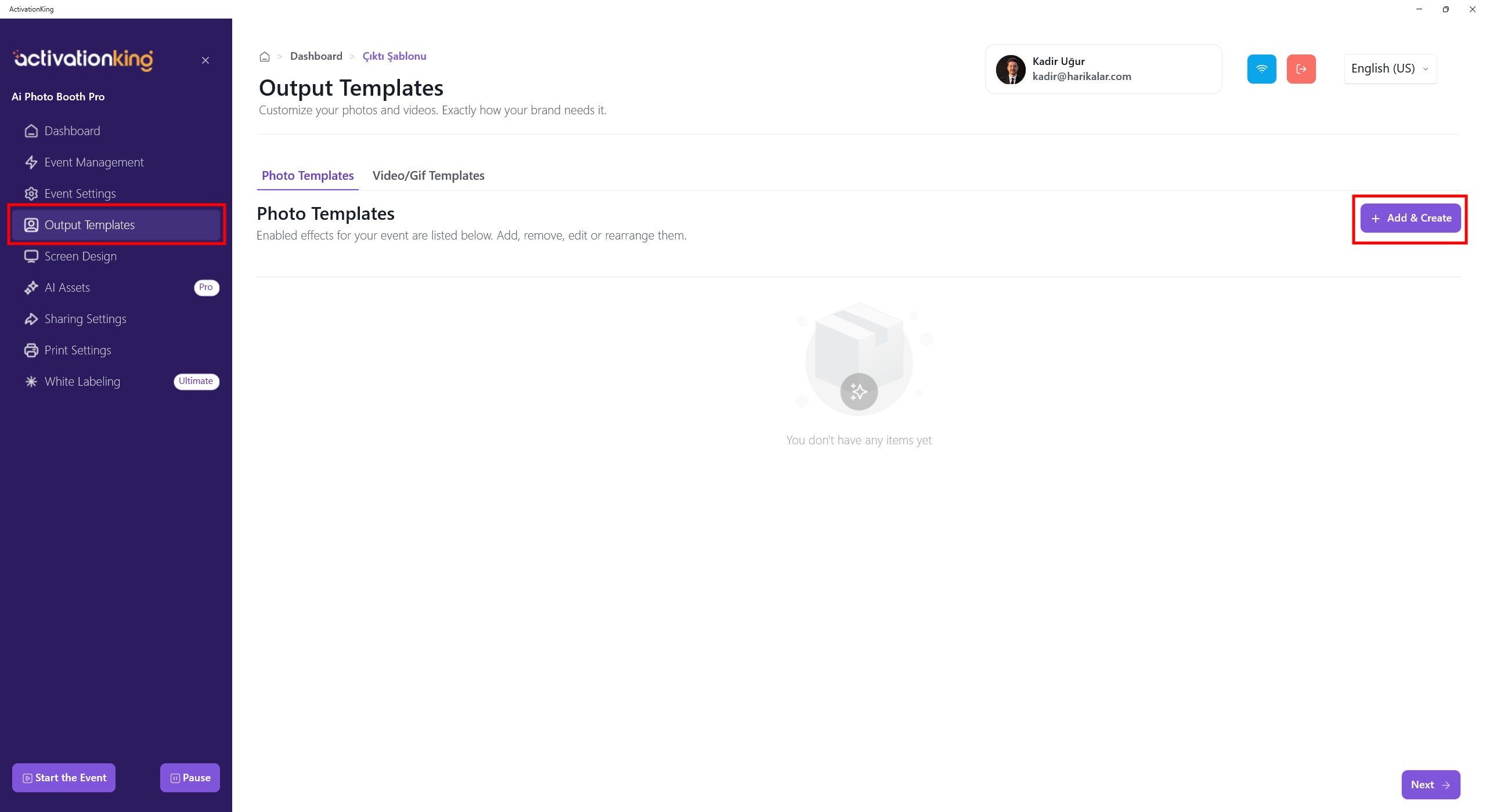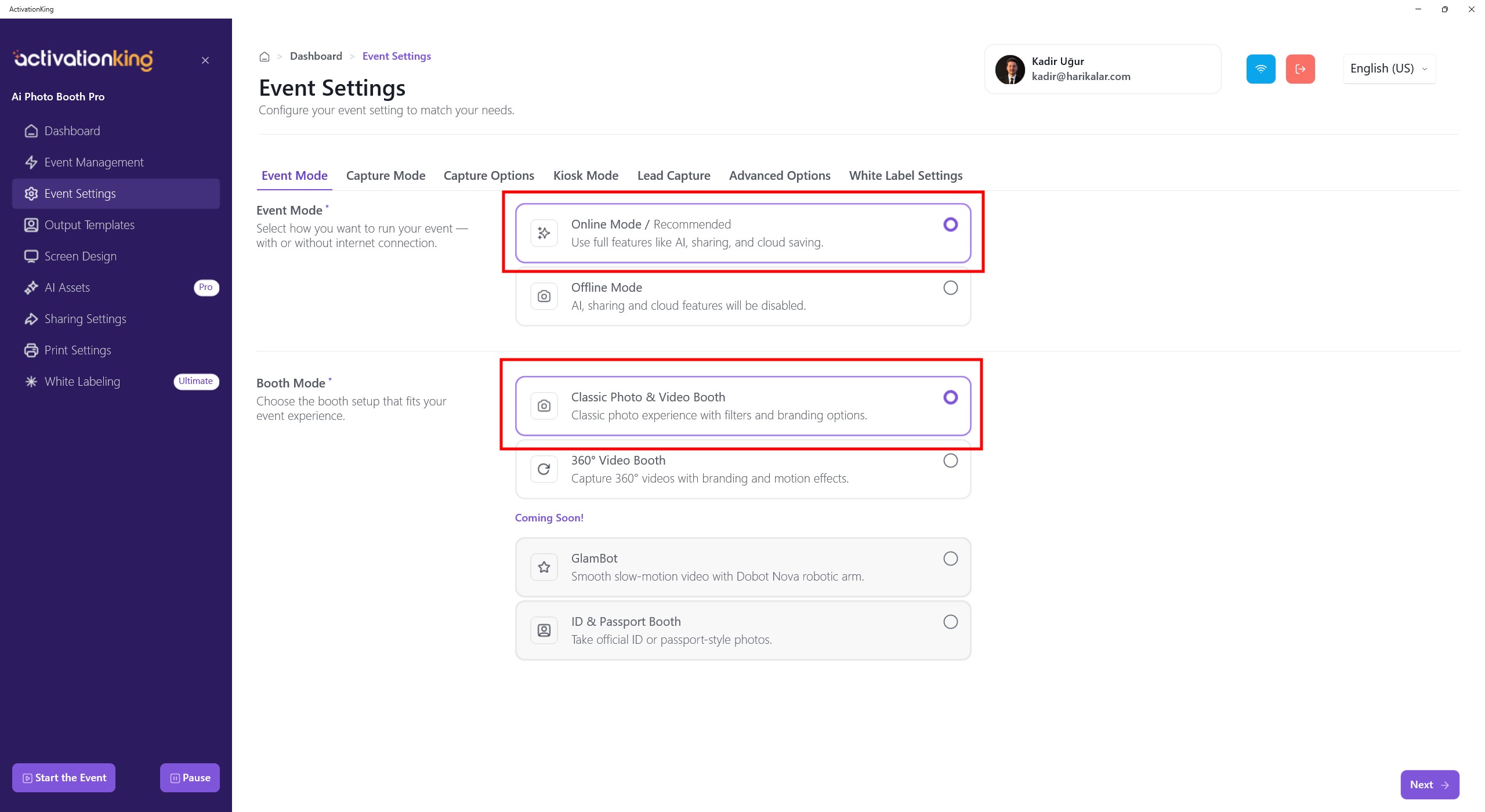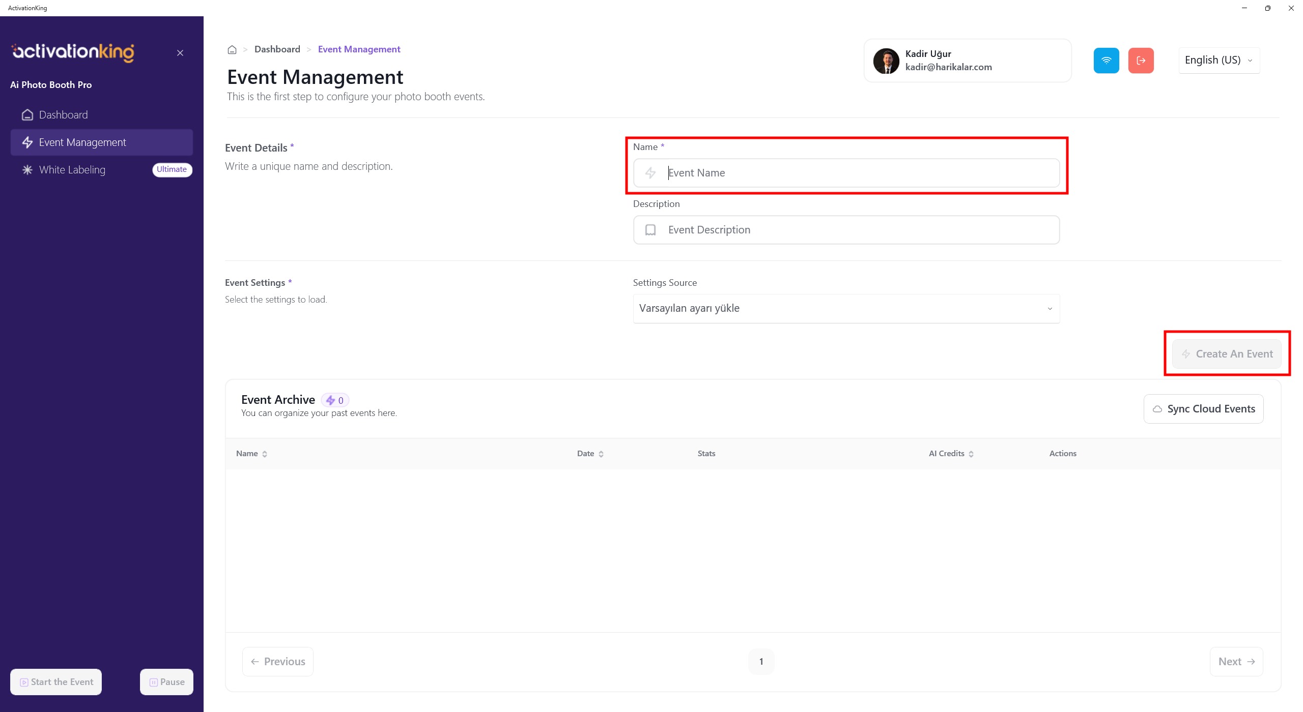 After logging into the software, we first need to create an event. Enter the event name and then click the Create an Event button.