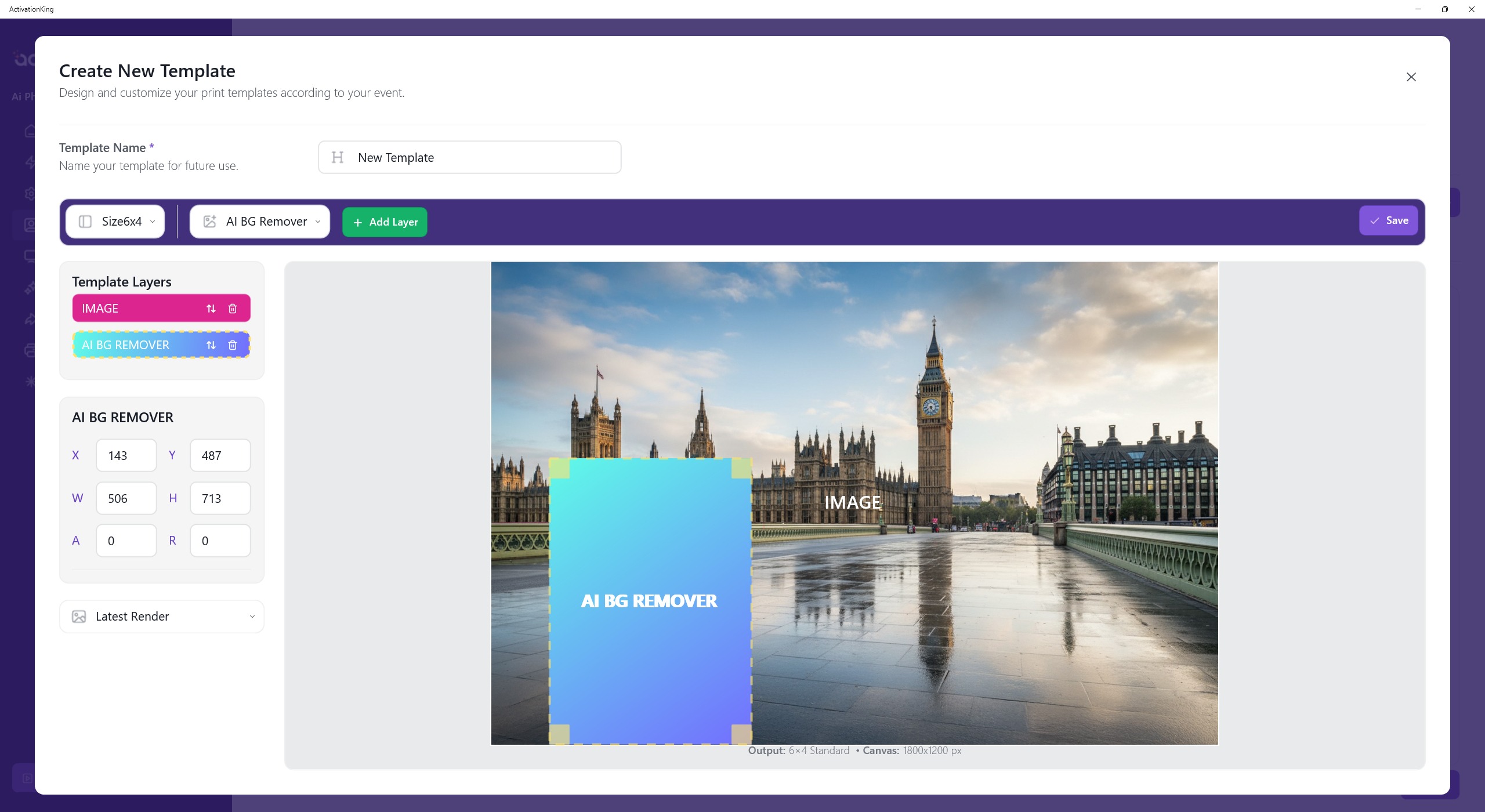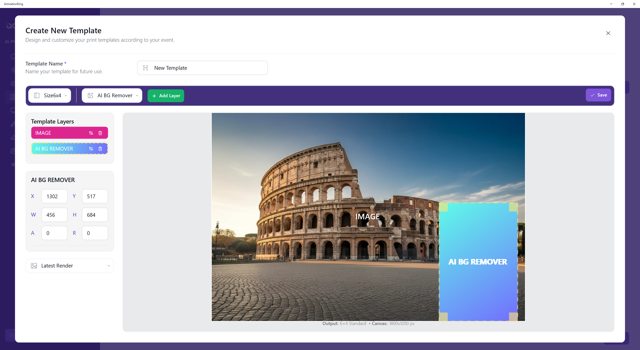 After adjusting the dimensions, I select AI Background and add a new layer.