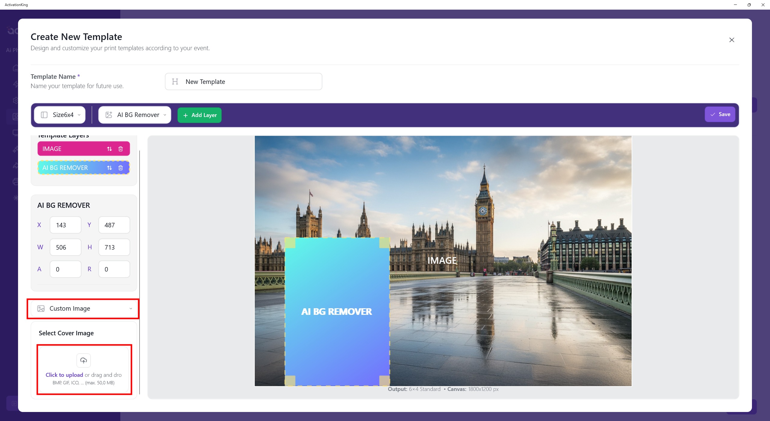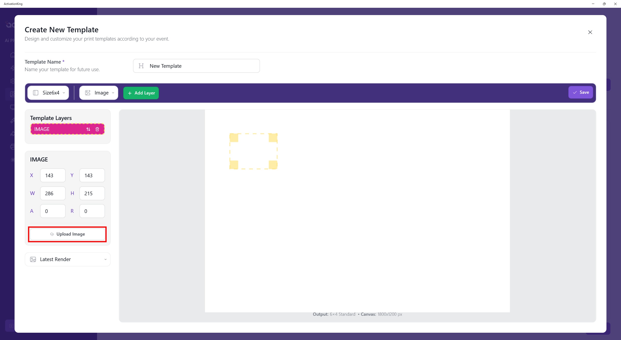After the layer screen opens, I click the Upload Image button and upload the background I want to use.