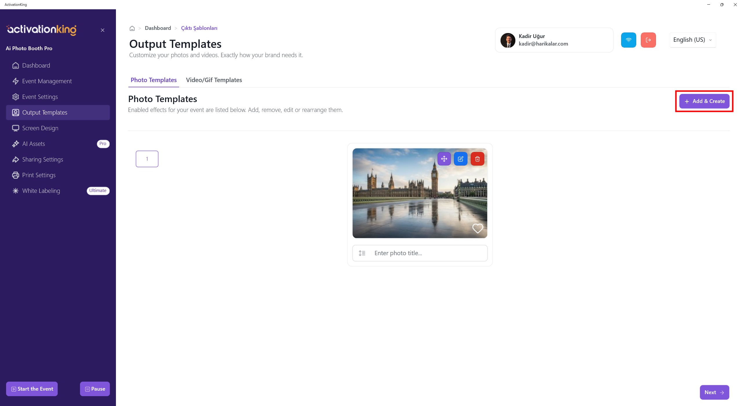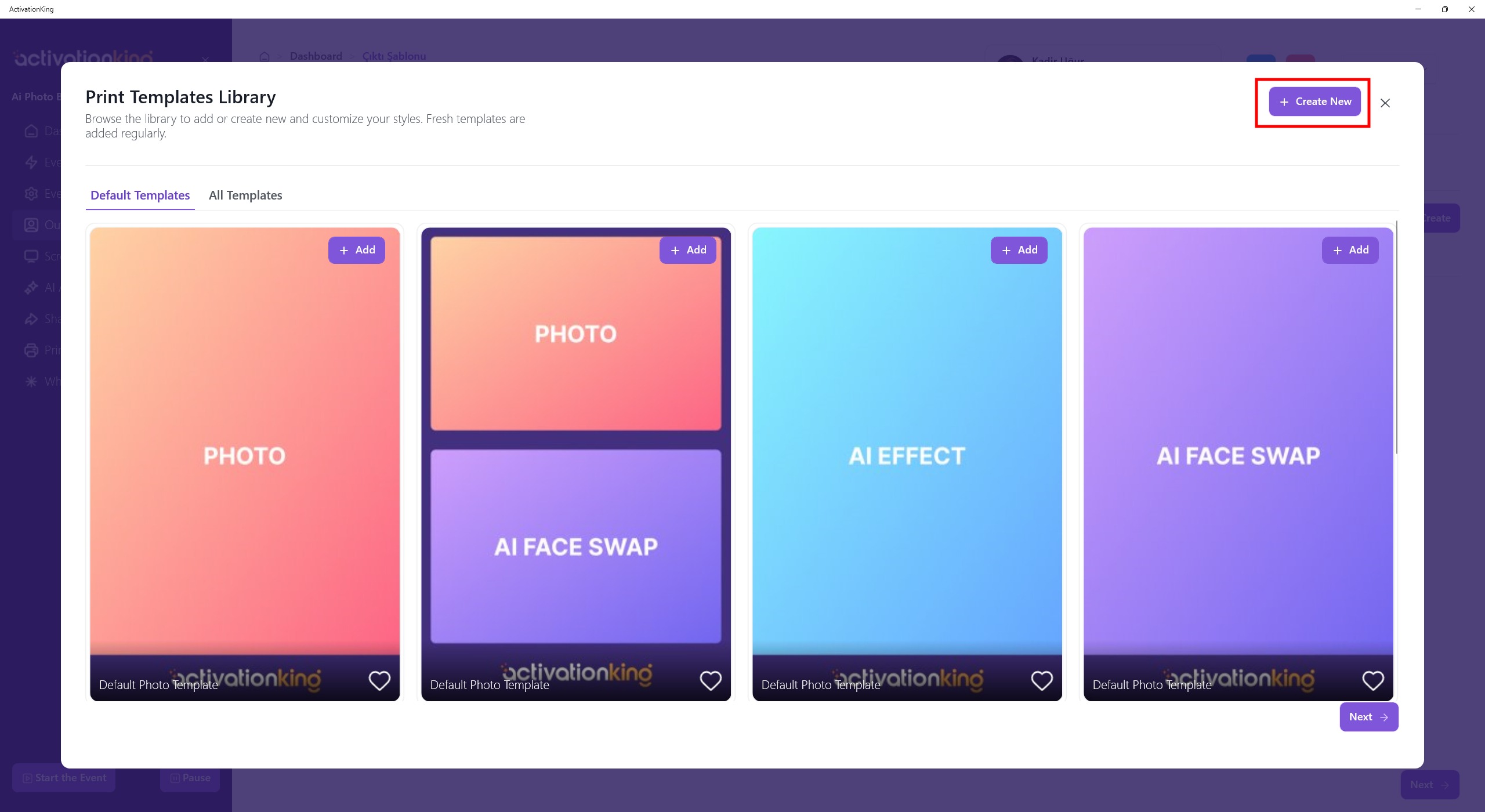 Now, to create a template for AI Background, I click the +Add & Create button.