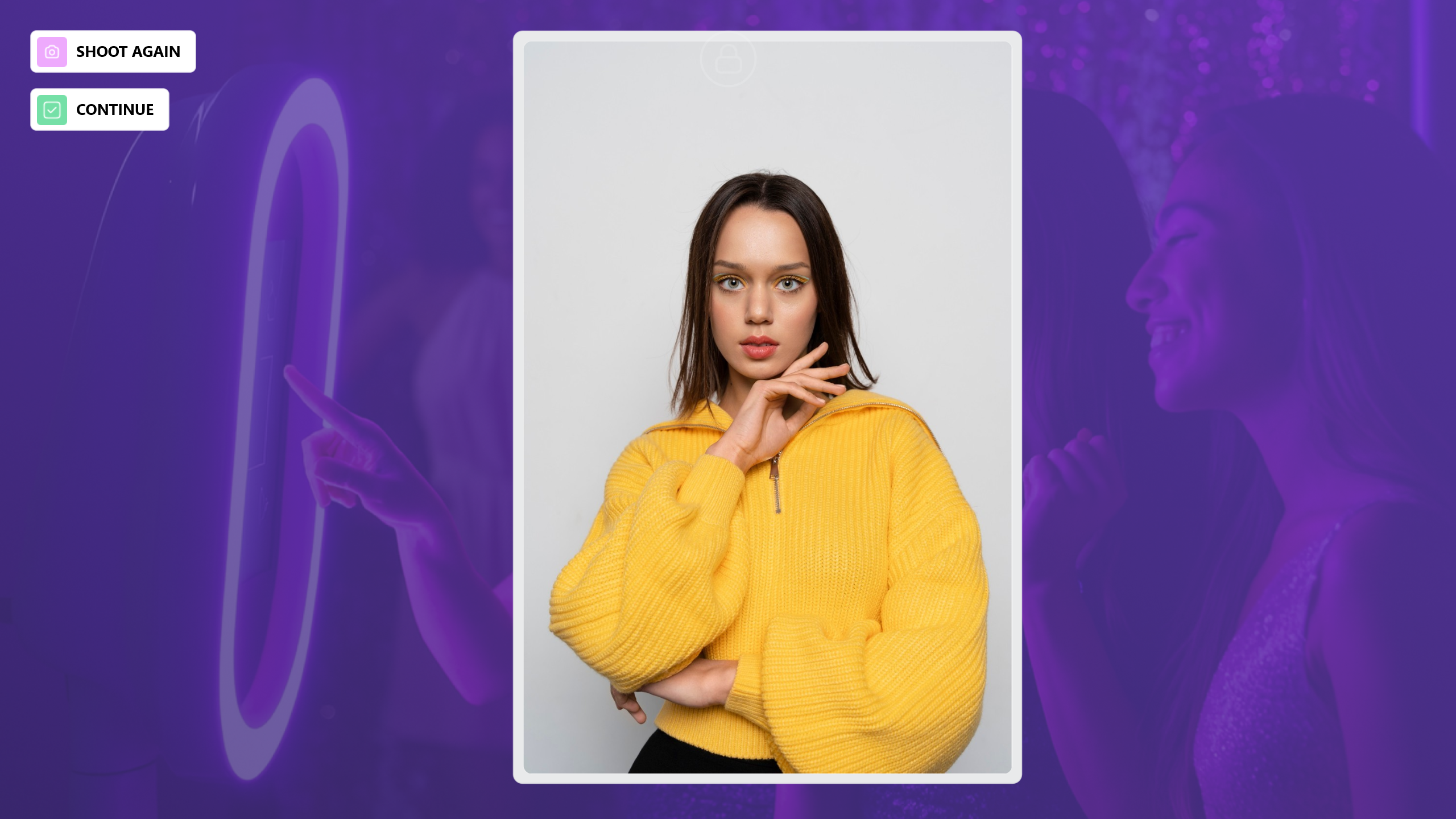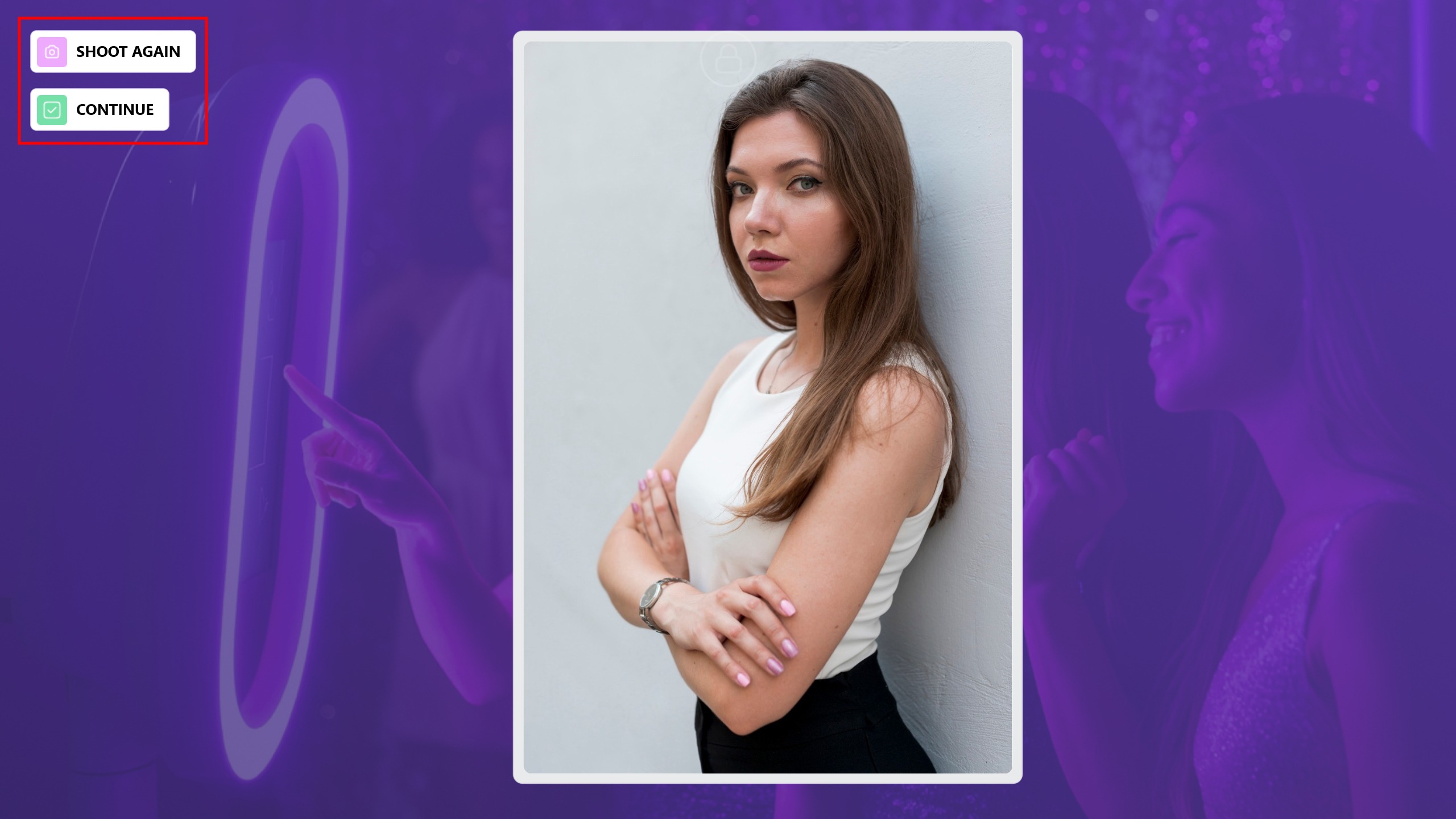 After the photo is taken, if the person does not like the result or if an unwanted photo is captured, you can retake the photo by clicking the Shoot Again button. Once the photo capture is complete, click the Continue button.