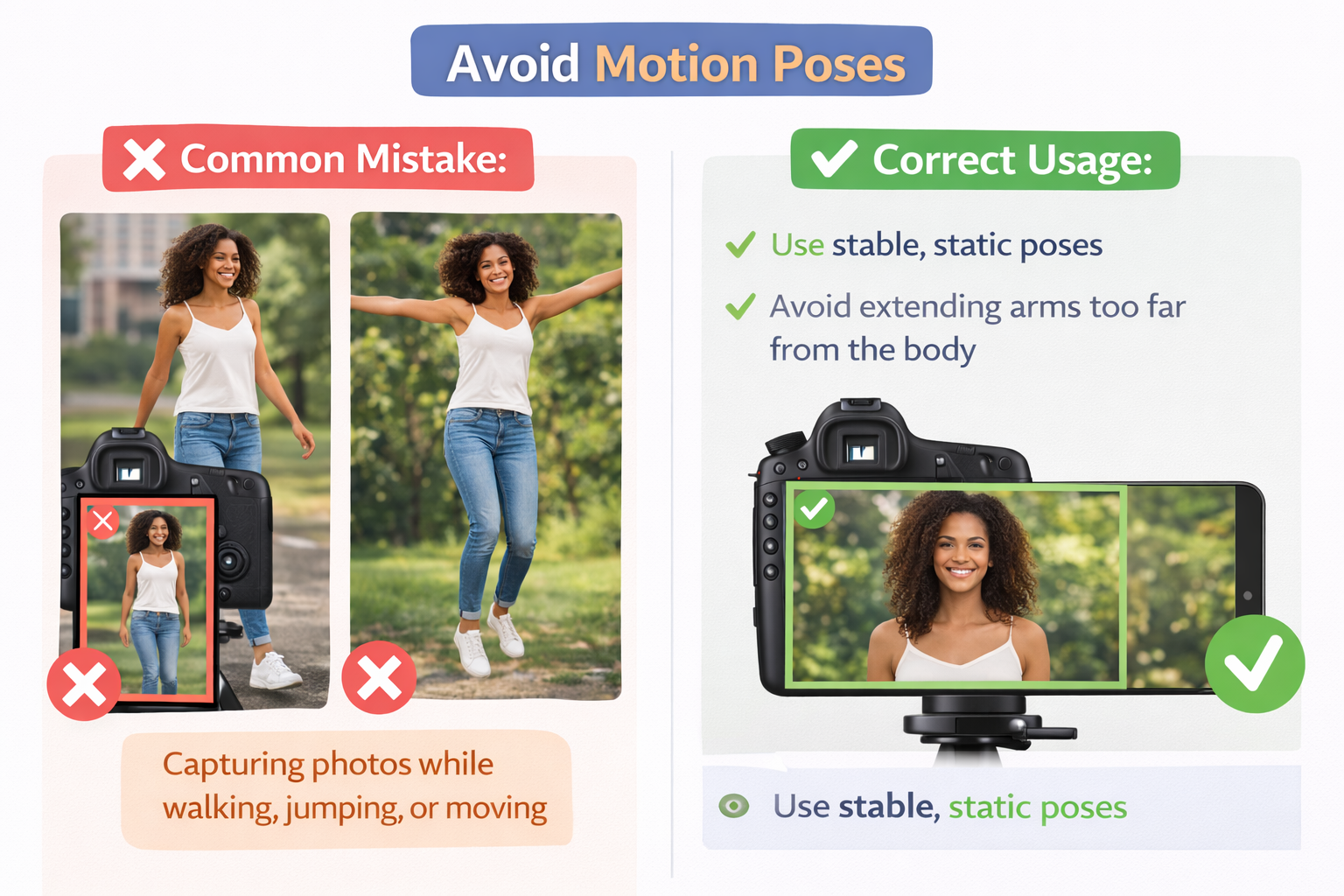 • Use stable, static poses