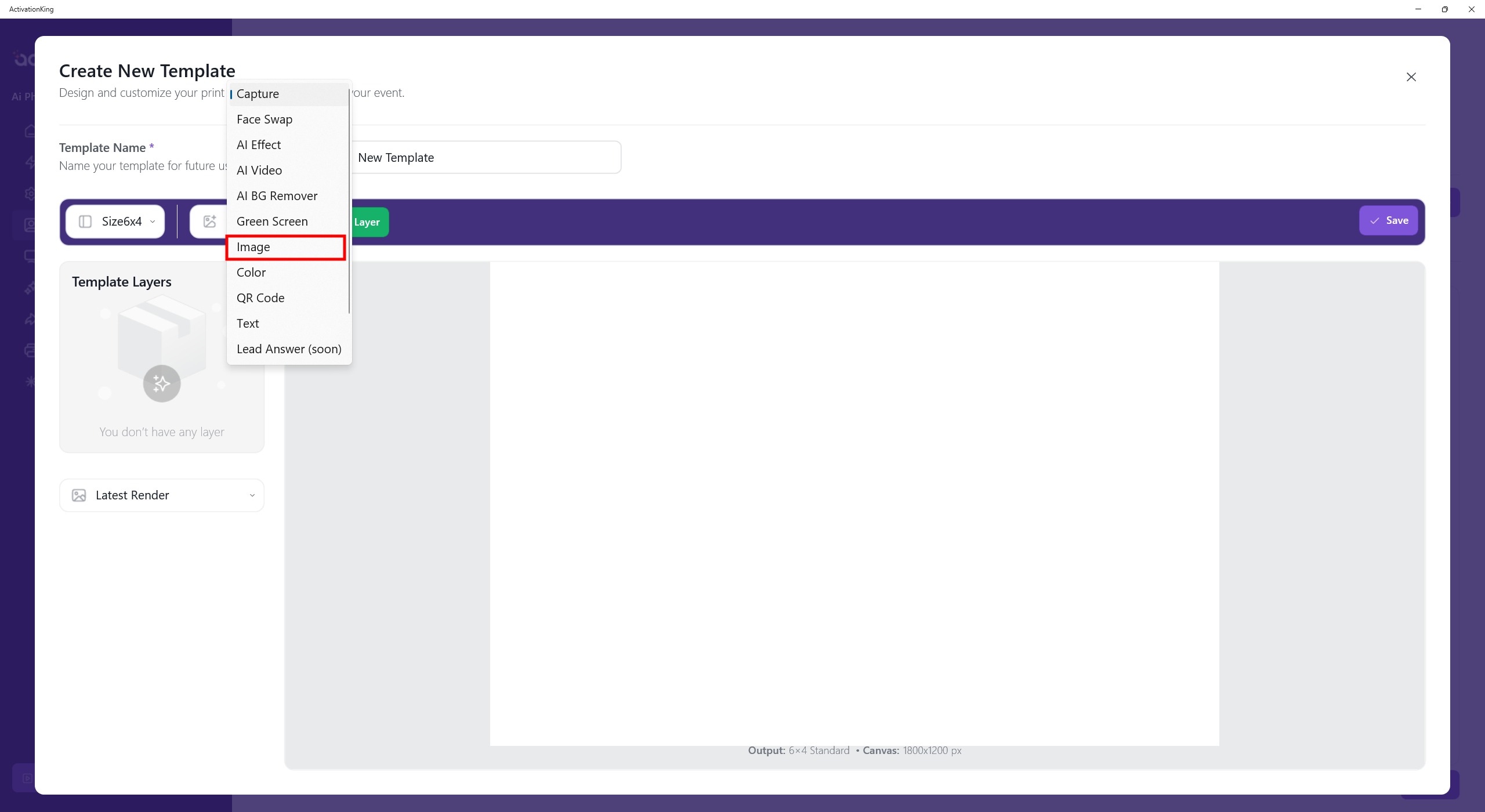 I will first add the background I want to use, so I select Image and then click the Add Layer button.